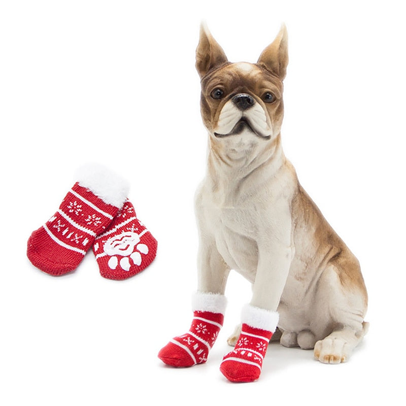 4Pcs Christmas Pet Dog Socks Shoes NEW YEAR Christmas snowflake shape Non-Slip Knit Pet Cat Socks Soft Warm Dog Accessories